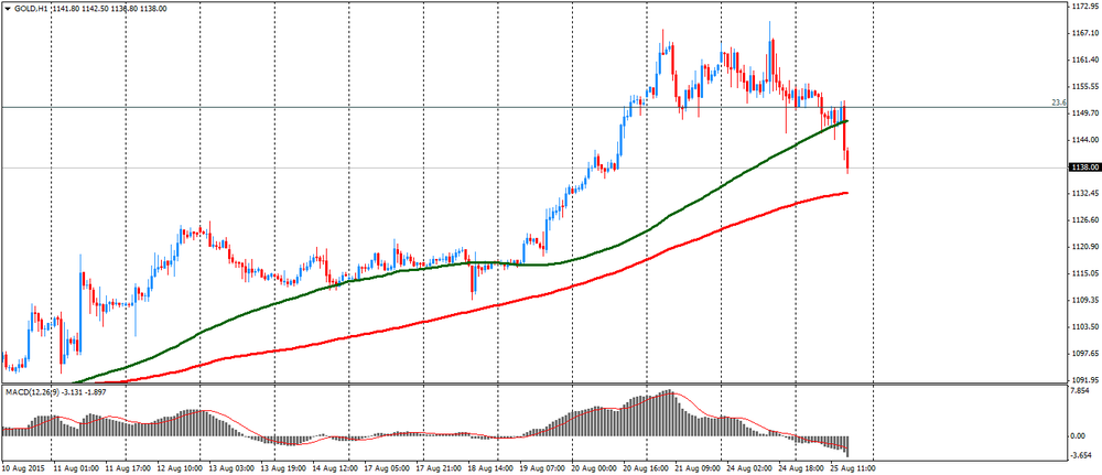 Стоимость золота упала более чем на 1,5 процента, опустившись ниже отметки $1140, что было связано с сегодняшним решением ЦБ Китая и ростом американской валюты.