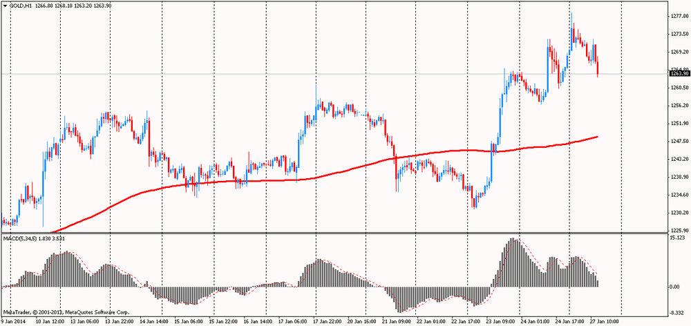 Цены на золото упали до уровня $1262.40 (-0,15%).
