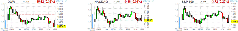 В последний день января основные фондовые индексы США находятся в небольшом минусе, участники рынка оценивают массу вышедших сегодня макроэкономических данных в Японии, Европе и Америке. Данные, по большей части, вышли смешанные.