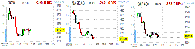 Начав сессию в области нулевой отметки, в первые полчаса сегодняшней сессии индексы сумели незначительно укрепиться. Но затем были опубликованы слабые данные по производственному индексу ISM, после чего индексы стремительно переместились на отрицательную территорию.
