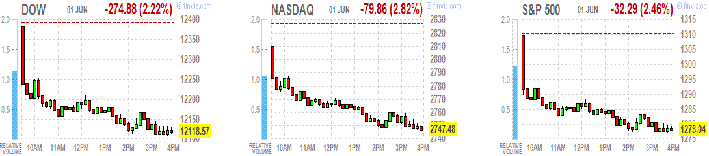Фондовые индексы США провели торги со значительным понижением, так как сочетание нестабильности в Европе со слабыми макроданными по США вызвали существенные продажи.