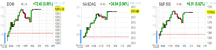 Начав сессию в области нулевой отметки основные фондовые индексы США позже сумели развить восходящее движение, в результате чего рост основных индексов превышал 0,5%.