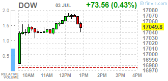 Основные фондовые индексы США выросли, а индекс Dow Jones Industrial Average впервые поднялся выше отметки 17 000. Сегодняшняя сессия была укороченной по случаю завтрашнего праздника Дня Независимости.