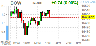 Компоненты индекса DOW торгуются разнонаправленно (15 против 15). Наибольшее снижение демонстрируют акции General Electric Company (GE, -0.93%). Больше всего выросли акции The Walt Disney Company (DIS, +2,08%)