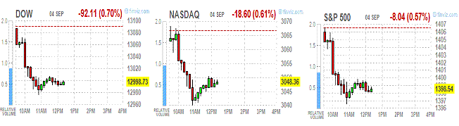 Давление на индексы оказали опасения участников рынка относительно перспектив американской экономики на фоне замедления темпов экономического роста и доходов населения наряду с бездействием федрезерва.