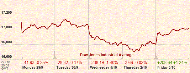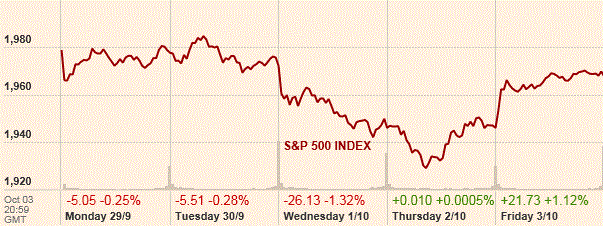 Основные фондовые индексы США в последнюю сессию недели выросли больше процента. Удивительно мощный всплеск роста занятости и другие новости по рынку труда в США показали новую силу. Как стало известно традиционно в первую пятницу месяца, рост числа рабочих мест ускорился в сентябре, а уровень безработицы опустился ниже 6% впервые с середины 2008 года, предполагая, что рынок труда улучшается быстрее, чем считалось ранее. Об этом было сказано в отчете Министерства труда США. Согласно данным, по итогам прошлого месяца число занятых в несельскохозяйственных отраслях выросло с учетом сезонных колебаний на 248 тыс., что является максимумом с июня текущего года. Добавим также, что рост за август был пересмотрен в сторону повышения - до 180 тыс. с 142 тыс., а показатель за июль - до 243 тыс. с 212 тыс. Уровень безработицы, тем временем, упал до 5,9% в прошлом месяце с 6,1% в августе, достигнув минимума с июля 2008 года. Экономисты ожидали, что число занятых вырастет на 216 тыс., а уровень безработицы останется неизменным. Вместе с тем, в сентябре индекс деловой активности в сфере услуг США, рассчитываемый Институтом управления поставками (ISM), умеренно ухудшился, достигнув при этом уровня 58,6 по сравнению с августовским чтением на отметке 59,6. Согласно прогнозу экспертов, значение данного показателя должно было снизится до 58,5.