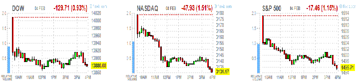 Фондовые индексы США провели все торги на отрицательной территории на фоне слабых данных по производственным заказам, снижения рейтингов акций ряда “голубых фишек”, а также роста доходности гособлигаций Италии и Испании.