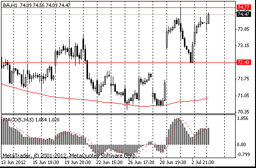 Акции BA на текущий момент выросли на 0,26% и достигли $74.46.