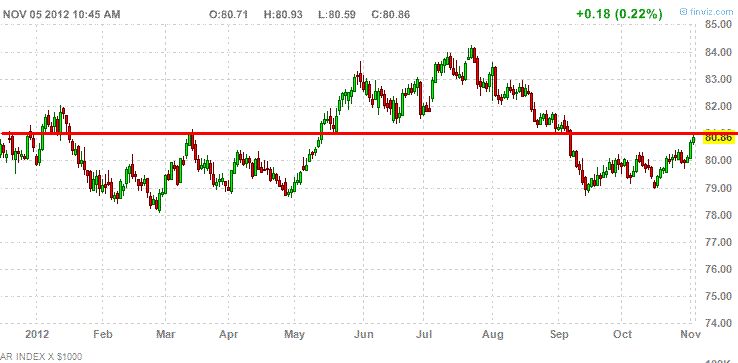 Кроме того, распространению оптимистических настроений способствовала публикация данных по индексу экономических условий ISM в производственной сфере, составившему в октябре 51,7, что оказалось лучше усредненных прогнозов рынка в 51,2.