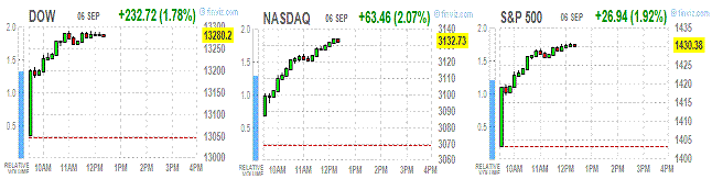 FTSE 100 5,777.34 +119.48 +2.11%, CAC 40 3,509.88 +104.09 +3.06%, DAX 7,167.33 +202.64 +2.91%