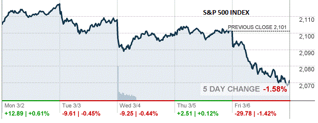 Фондовые индексы США снизились в пятницу, так как сильный ежемесячный отчет по занятости был нивелирован ожиданиями по повышению процентных ставок со стороны Федеральной резервной системы США в этом году и, возможно, раньше, чем ожидалось. Так, доклад, представленный Министерством труда, показал, что число занятых в несельскохозяйственных отраслях заметно выросло в прошлом месяце, превысив при этом прогнозы экспертов и указав на признаки восстановления рынка труда. Согласно данным, с учетом сезонных колебаний число занятых в несельскохозяйственных отраслях увеличилось на 295 тыс. в феврале против ожиданий на уровне 241 тыс. Между тем, показатели за январь и декабрь были пересмотрены в сторону понижения - в целом на 18 тыс. Уровень безработицы, тем временем, опустился в феврале до 5,5% по сравнению с 5,7% в январе. Эксперты прогнозировали, что показатель снизится до 5,6%. Стоит также отметить, что по итогам января отрицательно сальдо при торговле товарами уменьшилось на 8,3% - до 41,8 млрд. долларов по сравнению с пересмотренным в сторону понижения показателем за декабрь на уровне $45,6 млрд. Однако, несмотря на такой заметный спад, показатель оказался выше средних прогнозов на уровне -$41,6 млрд.