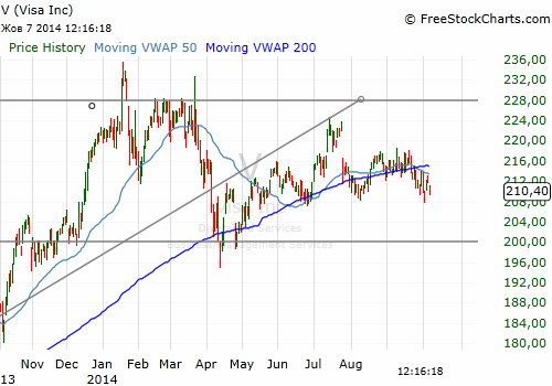 На текущий момент акции Visa (V) котируются по $209.92 (-0.88%)
