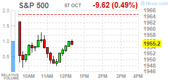 Большинство секторов индекса S&P в минусе. Лидирует сектор коммунальных услуг (+0,4%). Больше остальных снизился сектор здравоохранения (-1.1%).