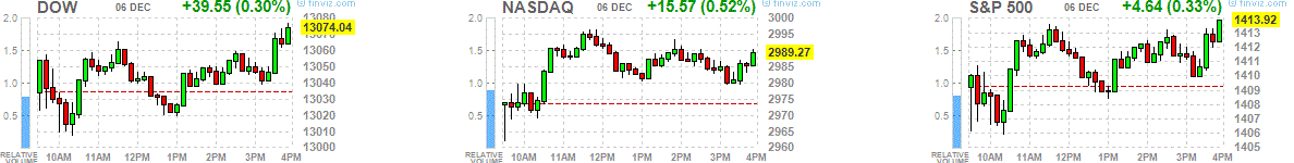 На момент закрытия:Dow +39.55 13,074.04 +0.30%