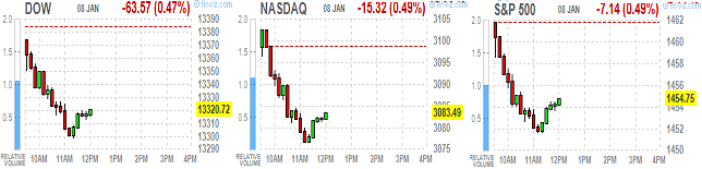 Стоит отметить слабость акций акций телекоммуникационных компаний. Акции AT&T (T), Sprint Nextel (S) и Verizon (VZ) несут потери от 1,4% до 2,0%. Среди новостей, которые имеют отношение к индустрии стоит отметить новости от AT&T о том, что по итогам 4-го квартала 2012 года было продано более 10 млн смартфонов. Также поступили сообщения о том, что Verizon Communications может выкупить долю Vodafone в Verizon Wireless.