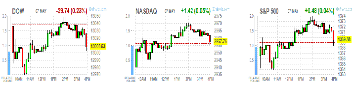 Фондовые индексы США провели торги, балансируя между прибылями и убытками на фоне озабоченности инвесторов итогами выборов в Греции и Франции.