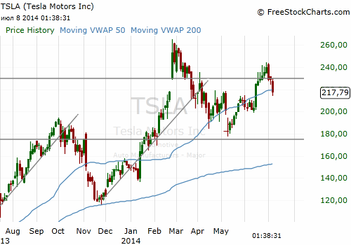 На текущий момент акции Tesla Motors (TSLA) котируются по $217.458 (-2,28%)