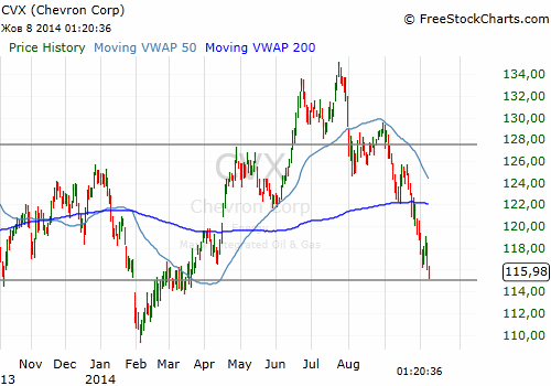 На текущий момент акции Chevron (CVX) котируются по $115.82 (-0.17%)