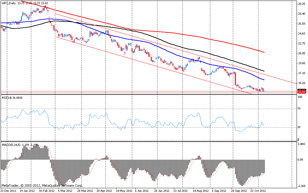 В данный момент акции HPQ торгуются по $13.82 (+0.88%). С начала года акции HPQ подешевели почти на 50%.