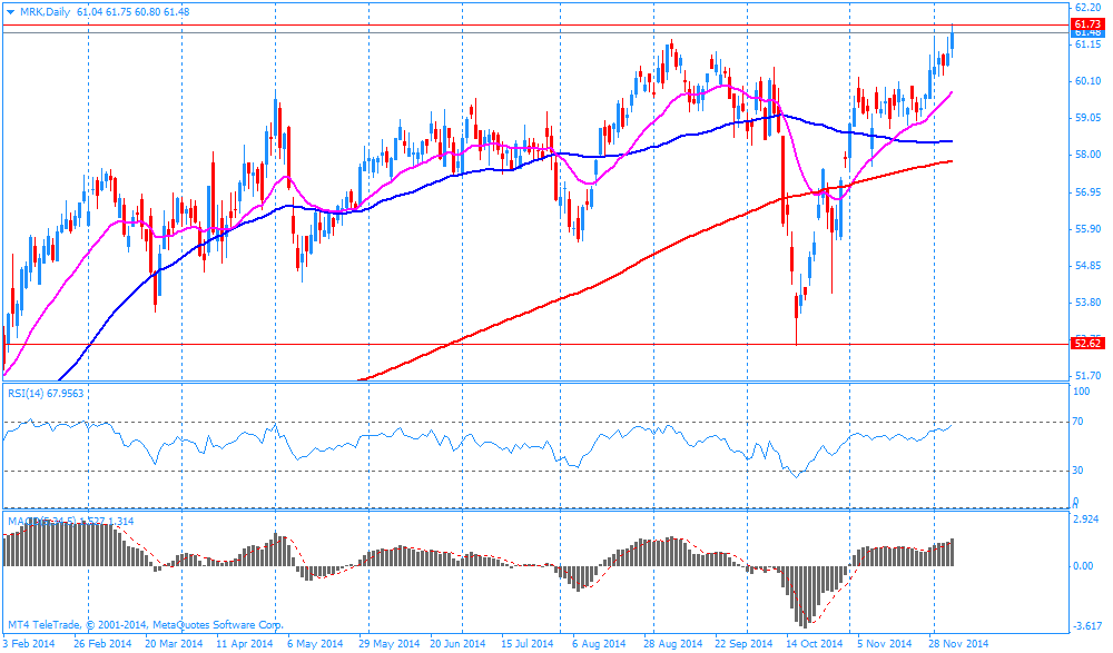Акции MRK на премаркете подорожали до уровня $61.67 (+0.29%).