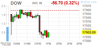 Компоненты индекса DOW торгуются разнонаправленно (16 в минусе, 14 в плюсе). Аутсайдером являются акции McDonald's Corp. (MCD, -3.81%). Больше остальных выросли акции United Technologies Corporation (UTX, +1.97%).
