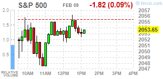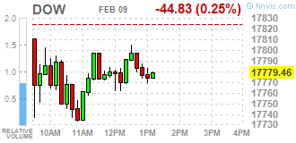 Компоненты индекса DOW торгуются преимущественно в минусе (26 из 30). Аутсайдером являются акции Wal-Mart Stores Inc. (WMT, -1.83%). Больше остальных выросли акции Caterpillar Inc. (CAT, +1.30%).