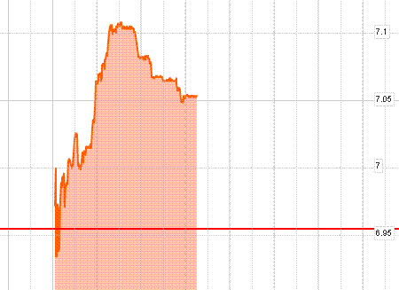 На текущий момент доходность 10-летних испанских облигаций составляет 7,052%, при этом сессионный максимум был установлен на уровне 7,108%.