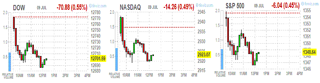 Рост доходности испанских облигаций выше уровня 7%, который многими рассматривается как некий предел возможностей страны самостоятельно обслуживать свои долги, стал причиной повышения опасений относительно новой волны долгового кризиса в Европе. На этом фоне индексы начали сессию в минусе.