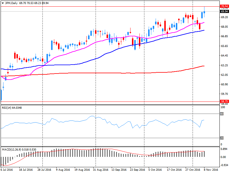 Акции JPM на премаркете выросли до уровня $70.17 (+0.20%).