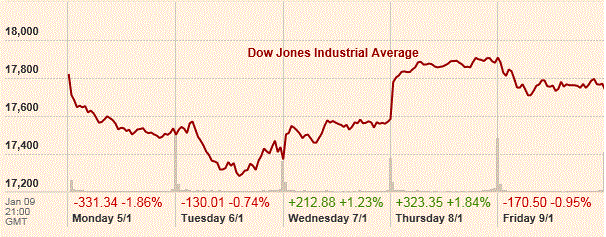 Что касается компонентов индекса DOW, то за прошедшую неделю прирост показали 15 из 30 акций, входящих в состав индекса. Наибольший отрицательный результат за неделю продемонстрировали акции JPMorgan Chase & Co. (JPM, -5.04%). Лидером были акции Merck & Co. Inc. (MRK, +9.39%).