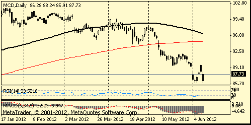 Крупнейшая в мире сеть ресторанов быстрого питания McDonald’s (MCD) отчиталась о 3,3%-ном повышении сопоставимых продаж в мае, в то время как аналитики прогнозировали 5,2%-ный рост. В результате, акции McDonald’s просели на 0,7%.