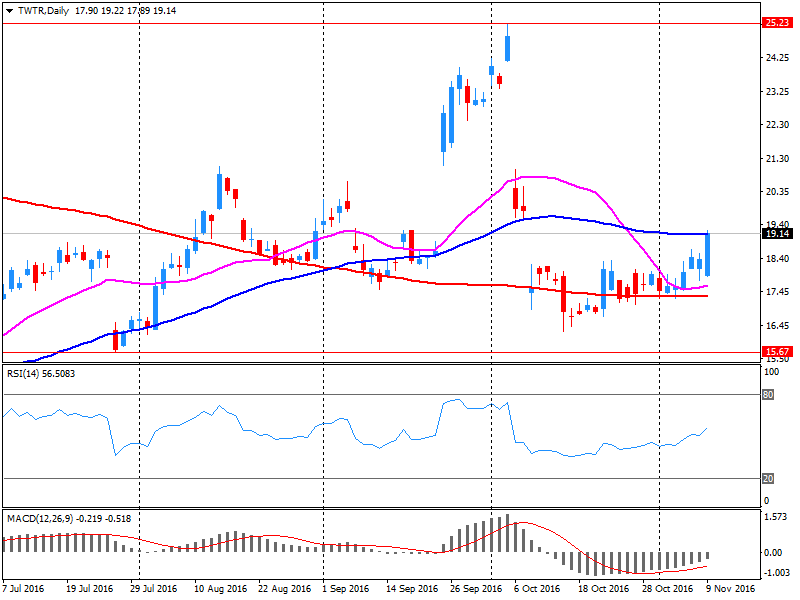 | Twitter, Inc., NYSE | TWTR | 18.89 | -0.24(-1.2546%) | 290552 |