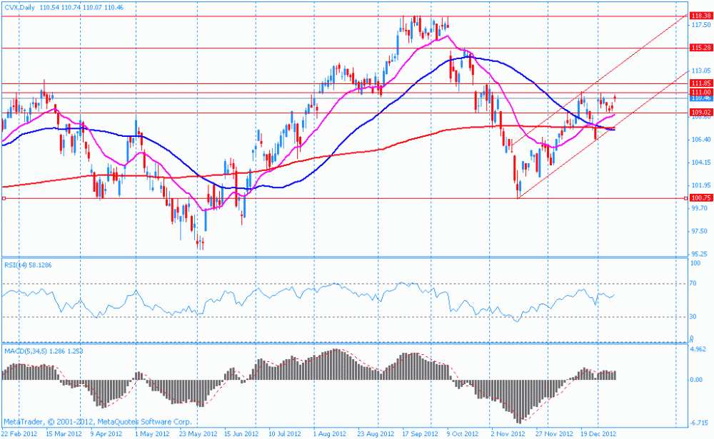 Акции CVX на премаркете выросли до уровня $111.22 (+0.68%), поднявшись выше максимума декабря.