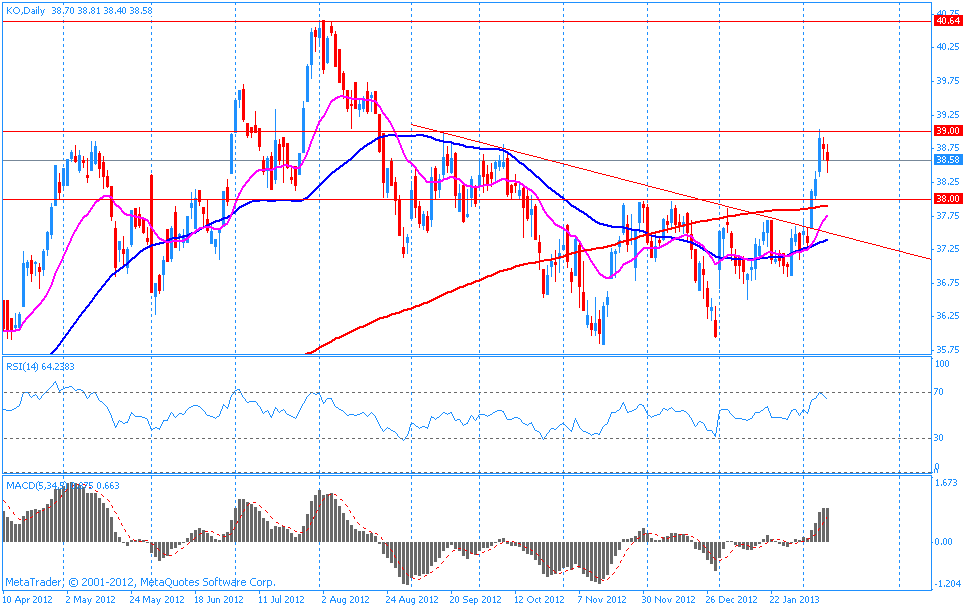 Акции KO на премаркете упали до уровня $38.46 (-0.39%).
