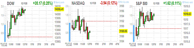 Акции Bilfinger SE выросли на 2,5% до 75,80 евро после того, как вторая по величине строительная компании Германии прогнозирует увеличение прибыли в 2013 году. Кроме того, в компании сообщили о 2-х процентном приросте продаж в прошлом году.Фондовые индексы США немного выросли, но все же завершили торги ниже нулевой отметки