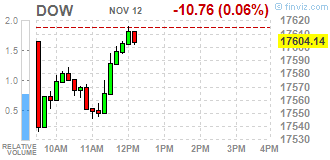 Компоненты индекса DOW торгуются разнонаправленно (из 30 в минусе 15). Аутсайдером сегодня стали акции JPMorgan Chase & Co. (JPM, -1.63%). Сильнее других выросли акции Nike, Inc. (NKE, +0.96%).