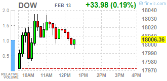 Компоненты индекса DOW торгуются разнонаправленно (14 в минусе, 16 в плюсе). Аутсайдером являются акции American Express Company (AXP, -3.17%). Больше остальных выросли акции Caterpillar Inc. (САТ, +1.96%).