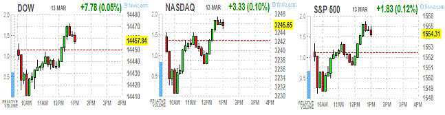 Индексы начали сегодняшнюю сессию в небольшом минусе, однако позже сумели восстановиться выше нулевой отметки. Поддержку индексам сегодня оказывают данные по розничным продажам в США, которые оказались лучше прогнозов (+1,1% против прогноза +0,5%).