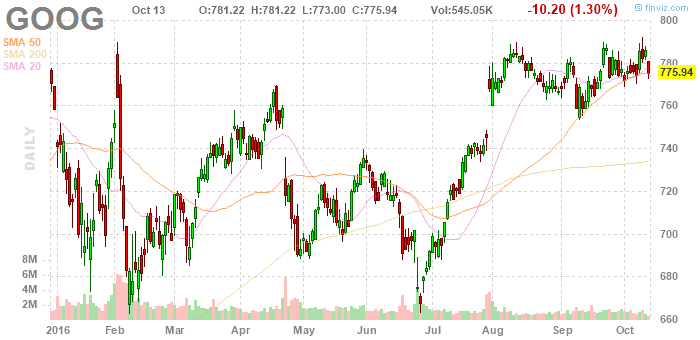 На текущий момент акции Alphabet (GOOG) котируются по $775,94 (-1,30%), а Facebook (FB) по $127,15 (-1,47%)
