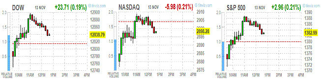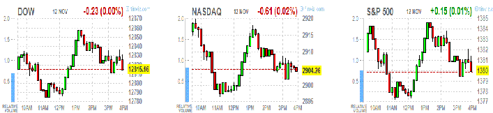 S&P 500 1,380.00 +0.15 +0.01%После позитивного старта основные фондовые индексы США упали в красную зону, к середине торгов сумели восстановиться и закончили сессию в области флэтовой линии.