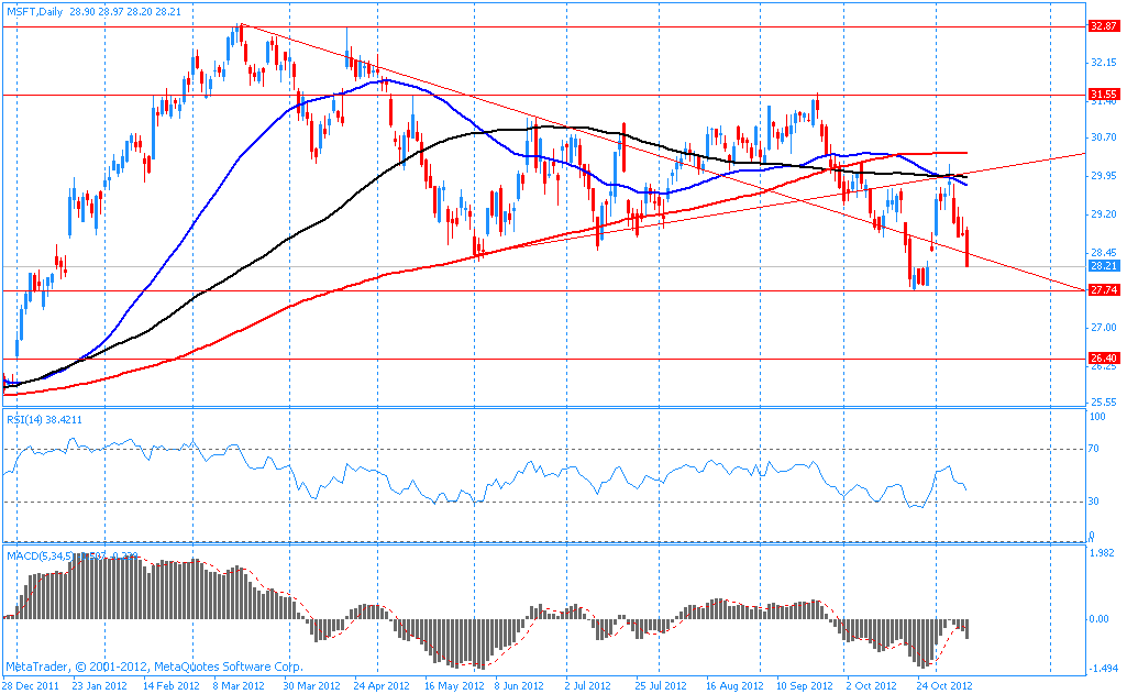 Акции MSFT на премаркете торгуются по $27.15, потеряв 3% своей стоимости.