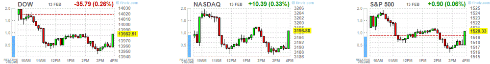 Инвесторы оценивали вышедшие корпоративные отчеты и макроэкономические данные. Позитивный старт сегодняшних торгов был результатом выступления президента США Барака Обамы перед Конгрессом, которое состоялось накануне. В своем ежегодном послании Обама призвал Конгресс поддержать действия правительства по оживлению упавшей в застой экономики страны путем создания качественных рабочих мест для среднего класса. Также Обама предложил увеличить расходы на инфраструктурные проекты.