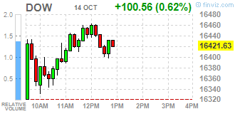 Большинство компонентов индекса DOW торгуются в плюсовой зоне (22 из 30). Аутсайдером являются акции Home Depot, Inc. (HD, -0.79%). Больше остальных выросли акции Caterpillar Inc. (CAT, +2.59%).