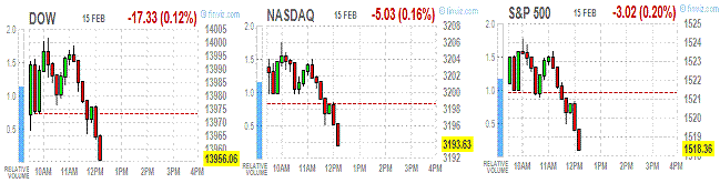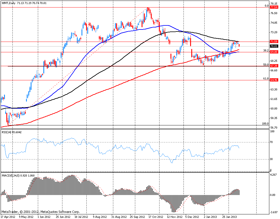 Среди корпоративных новостей стоит отметить слабость акций крупнейшего ритейлера в мире Wal-Mart Stores Inc (WMT). Причиной причиной снижения акций WMT являются сообщения о проблемах в ее крупнейшей иностранной дочерней компании - британской сети супермаркетов ASDA. Речь идет об обнаружении на прилавках ASDA продукции, в состав которой должна была входить, однако на самом деле она содержала конское мясо. Связанный с этим скандал набирает обороты в Европе.