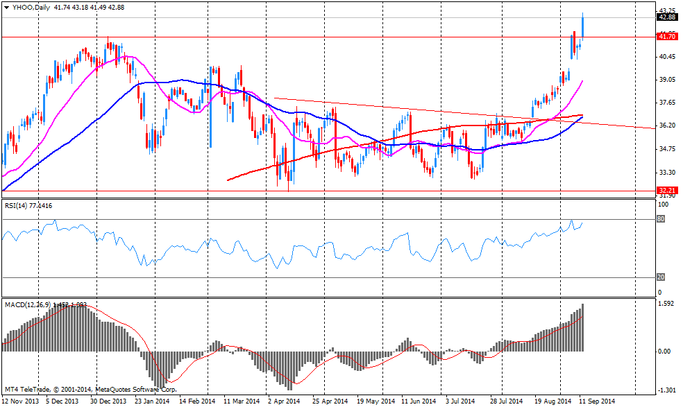 Подобные сообщения оказали поддержку акциям Yahoo! Inc (YHOO), которая имеет вторую по величине долю в Alibaba. Акции YHOO на премаркете выросли до уровня $43.71 (+1.94%).