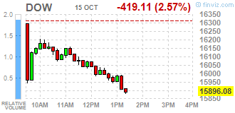Большинство компонентов индекса DOW торгуются в минусовой зоне (29 из 30). Аутсайдером являются акции JPMorgan Chase & Co. (JPM, -5.14%). Больше остальных выросли акции Johnson & Johnson (JNJ, +0.23%).