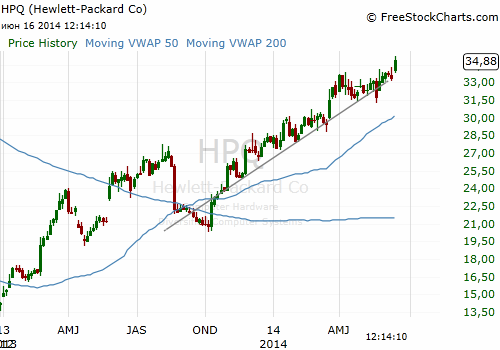 На текущий момент акции Hewlett-Packard (HPQ) котируются по $34.83 (-0,94%)