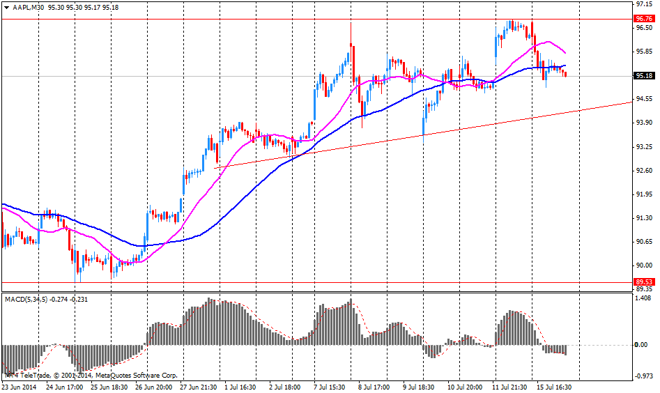 На текущий момент акции Apple (AAPL) котируются по $96.25 (+0,97%)