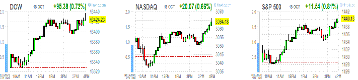 Dow 13,552 +128 +0.95%Nasdaq 3,101 +37 +1.20%
