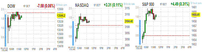 Основные фондовые индексы США выросли на фоне опубликованных финансовых отчетов от ряда крупнейших компаний за третий квартал.